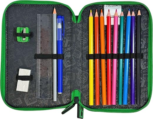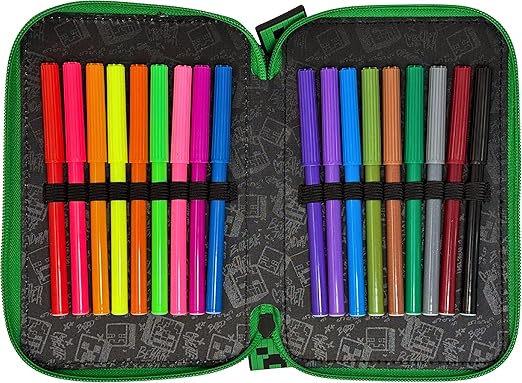 Ecco l'astuccio ufficiale Minecraft con grafica dedicata al Creeper, completo di 32 accessori per la scuola. Dotato di due scomparti separati, offre spazio organizzato per penne, matite e piccoli strumenti, ideale per studenti e fan del celebre videogioco. Pratico e resistente, è perfetto per aggiungere un tocco gaming al materiale scolastico.