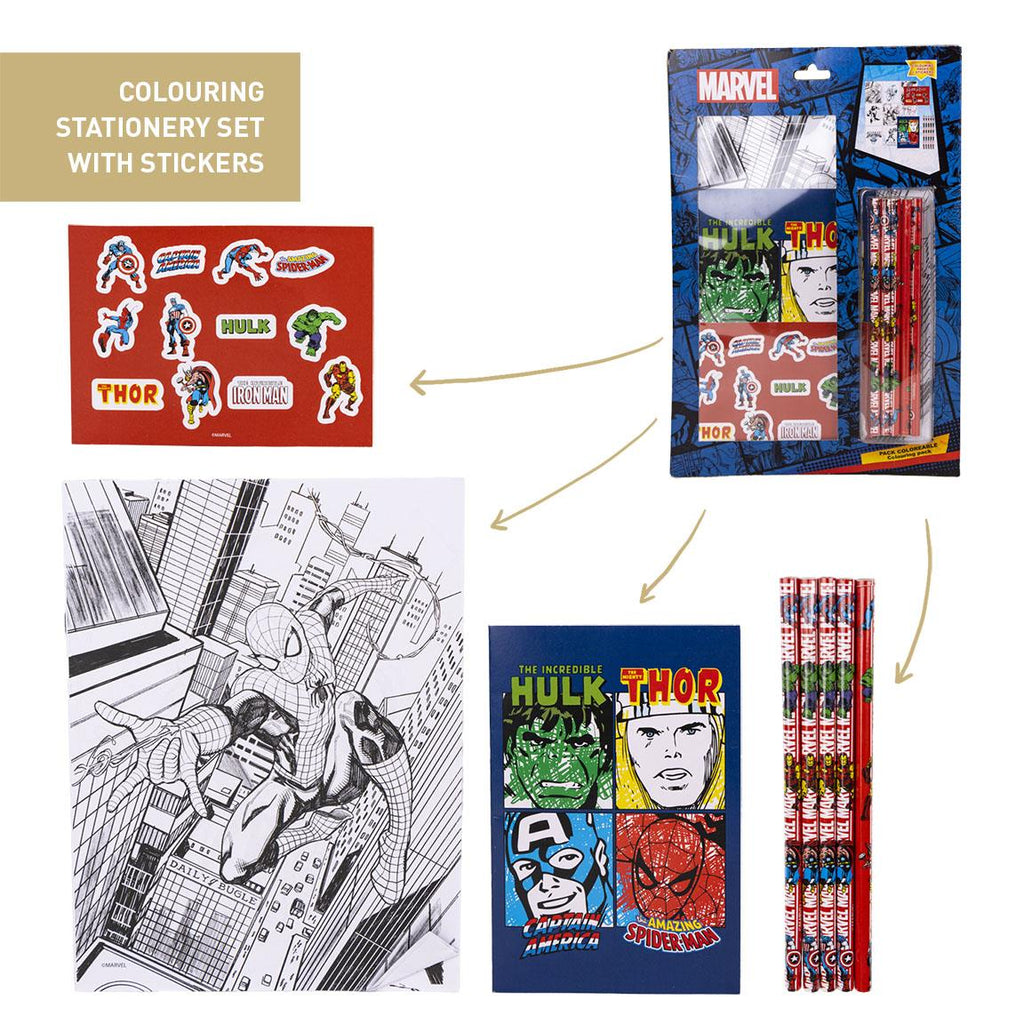 Chi meglio dei mitici Avengers può aiutarti ad affrontare le sfide scolastiche? Porta Thor, Spider Man, Hulk e Captain America sempre con te con il fantastico Set di Cancelleria Avengers Marvel!