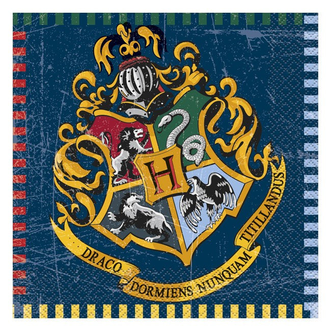 tovaglioli a tema Harry Potter 16pz confezione da 16 tovaglioli 16,5 x 16,5 cm 16 tovaglioli per alimenti con il logo di Hogwarts. Se vuoi realizzare una festa a tema Harry Potter i dettagli sono importanti, un'idea è utilizzare tovaglia, piatti, tovaglioli e bicchieri a tema Harry Potter.