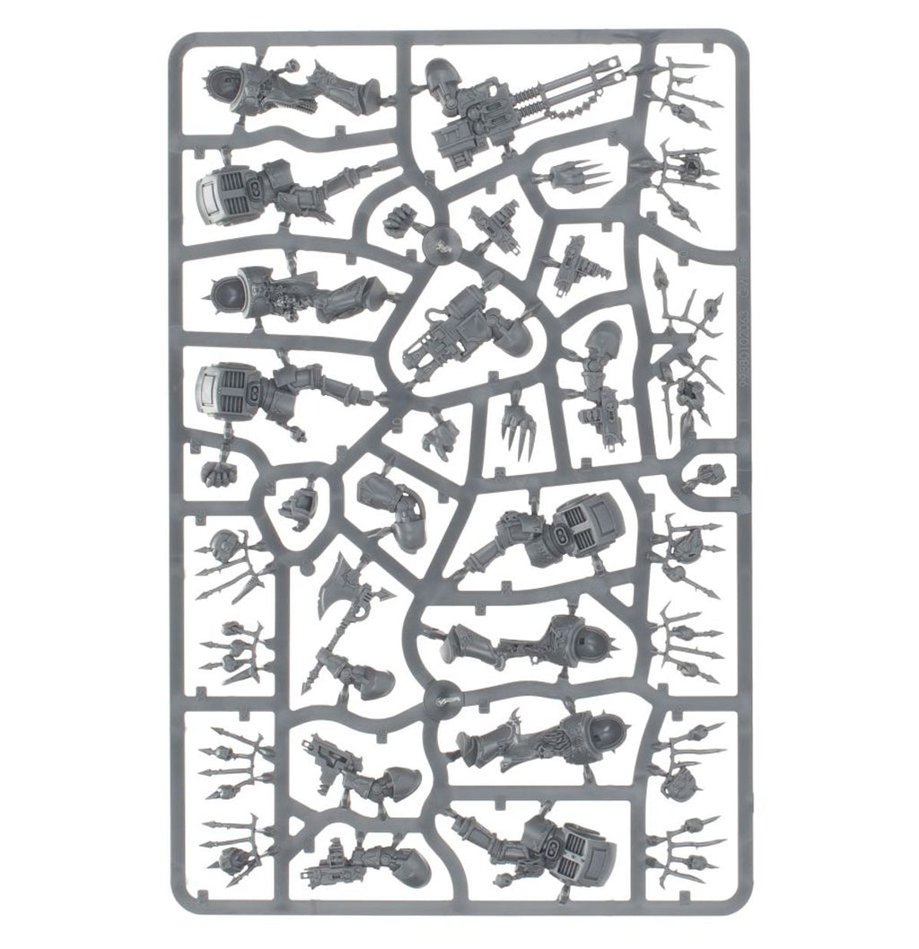 Warhammer 40k Chaos Space Marine Terminators è formato da 82 componenti di plastica ed è fornito completo di 5 basette Citadel rotonde da 40mm, oltre a 1 foglio di trasferibili degli Space Marines del Caos con 364 simboli dei Poteri Perniciosi e delle Legioni.